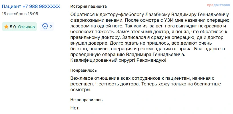 Вы получаете развёрнутые ответы на все вопросы от флеболога (сердечно-сосудистого хирурга)